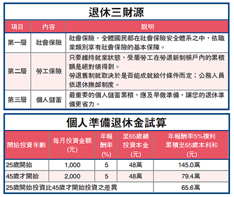 時代環境變遷,希望孩子大了能經濟獨立,同時也期待將來老了不拖累下一代,所以,在照顧家人的同時,也應為自己的退休準備預留空間。